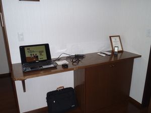 中の展示の様子です。 右パウダールーム、下はPCカウンターで実際にパソコンを置いてスーパーウォールのDVDを上映。