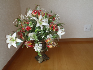 お施主様の奥さま手造りのフラワーアレンジメントを